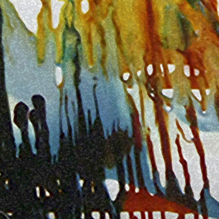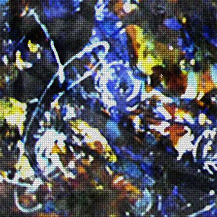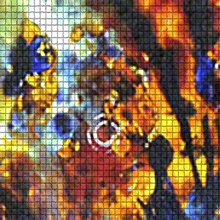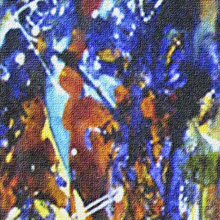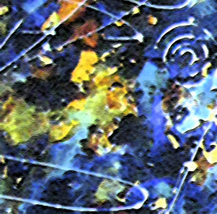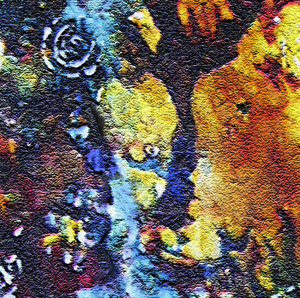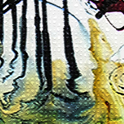 À partir des toiles d’origines , je réalise des photos numériques. Je fais d’abord une capture de fragment d’images dans des zones d’invisibilité sur les toiles préceptrices et ensuite j’ai recours aux outils numériques (Photoshop, ,filtre) pour leur donner une autre allure.